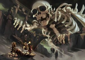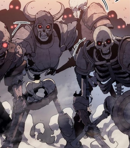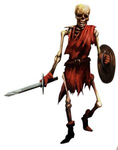 ・白骨化した人間の戦士の死体が冥府の影響を受け動き出したもの。原因としては魔力溜り、きちんと埋葬(火葬)されなかった等の自然発生と術者や上位個体の召還による人為的な二通りがある。後者の場合は施術者の意思に従うがそうでない場合は生者を憎み攻撃してくる。