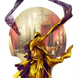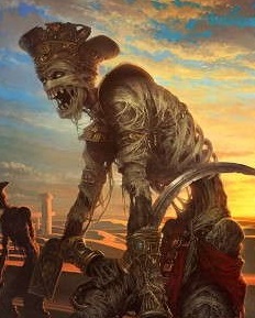 禁断の魔術を用いて成る存在で、黄色い襤褸を纏った腐敗した死体、といった趣だが足が宙に浮き、周囲には穢れた精霊達を従えている。