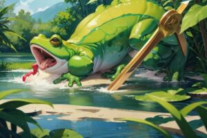 ・全長15~20cm程の大型の毒ガエル。非常に凶悪な毒を吐き出してくる厄介な相手だが、戦士が盾を構えていれば大抵は問題ない。万が一毒を喰らったら即時撤退すべし、短期間の間に5回(耐久判定に失敗)以上毒を喰らうとそのまま永遠に失明の恐れがあるためである。