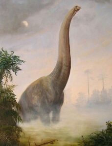 ・全長20メートル以上に達する大型の竜脚類。ブロント(雷のような~)の名称は足音が雷のように轟き渡る巨体から来ている。大人しい性質のため、飼いならす事も可能だが、基本のんびりしているため労働力としても今一、互いに仲良く共存ぐらいしか今の所餌付け理由がない。ただし怒らせると小さな街程度は一夜で消滅する。