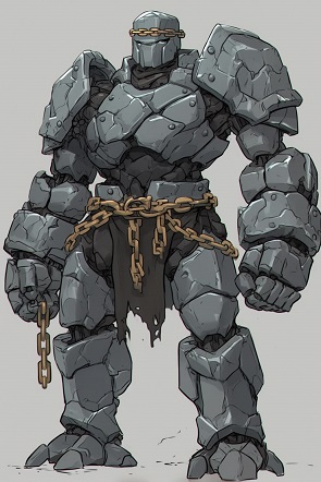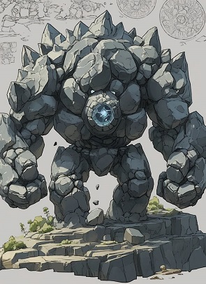 ・全長2.5m程の石製のゴーレム(儀像兵)あちこちの迷宮や一部の公共施設で使用されている。上記はきちんと戦技付与されたもので”拳大の石”から作り出す簡易ストーンゴーレムは判定の全数値が-2、ダメージが-10される。