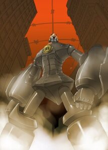 ・全長80~100m程、人間の姿を模した青銅製と思われるが魔術処理されているためその硬度はオリハルコンに迫る。全身に兵器を隠し持ち、両腕にはぶ厚い装甲シールドのような手甲が備えられており、これを前面に構えることでほとんどの兵器をガードすることができると言われている。世界融合時に顕現したものの中には心がある巨神像も…