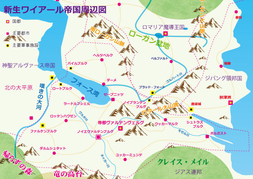 建国は聖歴820年。アルヴァース皇国の内乱時の雄ボナパルトが平原東部に建国。国内に月道が見つかり門の先との交易で力をつけ、北の大平原東部を手中に収めるも、周囲の全てを敵に回してしまい西は嘆きの大河、東は南ローガン山脈で侵攻が止まる。以後は大陸の覇者たらんと小競り合いを続けつつ国力の充実にあたる。神殿勢力が強く無い代わりのように錬金術が盛んで南ローガンを完全に手に入れたいのは鉱石のため、実力主義で巫子の軍事利用を真っ先に開始した国、巫子の保有数は最大で、現在も素質のありそうな者は片っ端から(それこそ誘拐してでも)手に入れ皇帝に忠誠を誓わせる教育を行っている軍事強国。国のイメージはドイツ。