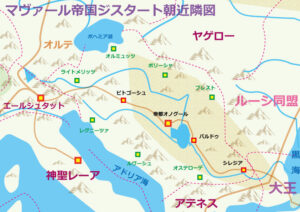 イスカンダル王家がレーア帝国から身を隠した、奇岩が並ぶ僻地の地下にある2万人以上が暮らしていた地下都市。廃棄された現在は下層が迷宮(ダンジョン)と化しているとか…王家にとっても聖地なので定期的にダンジョンアタックが行われている。